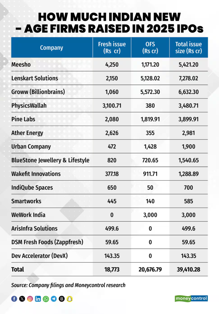 he new-age IPOs that hit Dalal Street in 2025 have unlocked nearly Rs 40,000 crore in public-market capital — a sharp jump from last year — as a decline in late-stage private funding directly pushed more startups to list rather than pursue additional growth rounds.